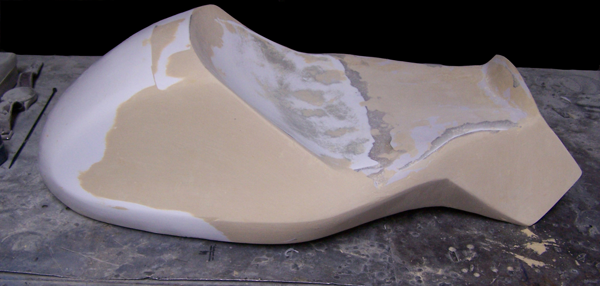 As you can also see on the full fairing bike above, i've desided to close the gap under the seat. So back in the workshop again, body filler, sand paper and body filler and sand paper again and again and again and this is our new seat.