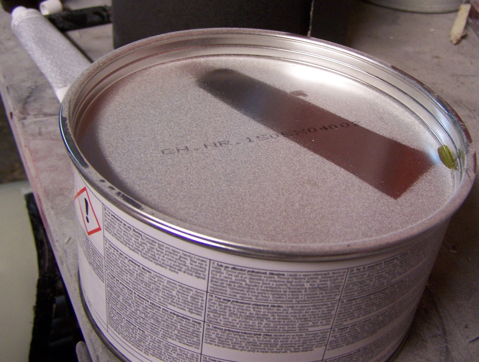 And in case you wonder how come this workshop is always so dusty, well it is just 35m^2 and this is the dust of just one days work on the seat. By the way, throughout this project i used 8 kgs of body filler.